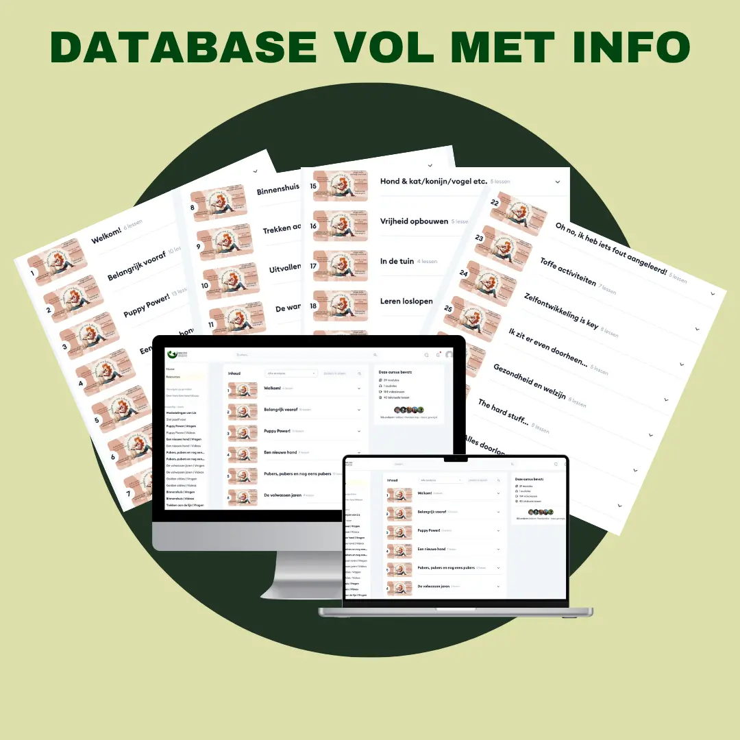 220 lessen, 29 modules en counting. Voor alles waar je tegenaan kan lopen zijn er lessen. Of het nu uitvalgedrag aan de lijn is, blaffen in huis, voedingsproblemen of een slechte recall. Alle onderwerpen worden behandeld.